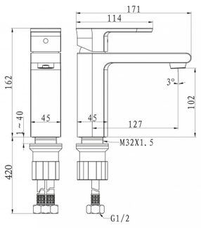 Высота смесителя: