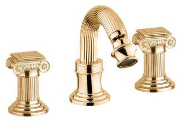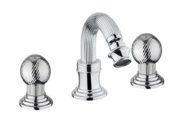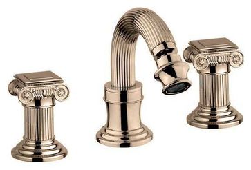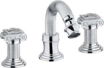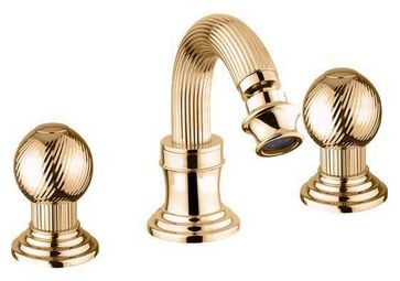 Управление: вентильное Материал: латунь Исполнение: хром, бронза, золото 24 карат Длина излива: 13,5 см Механизм: керамическая кран-букса Отверстия для монтажа: 3 отверстия Тип подводки: гибкая 1/2" Оснащение: донный клапан, аэратор Рабочий интервал давления в водопроводной сети: 0,5-6,0 Атм Гарантия: 5 лет с даты продажи (за исключением резиновых уплотнителей, шлангов, переключателей)