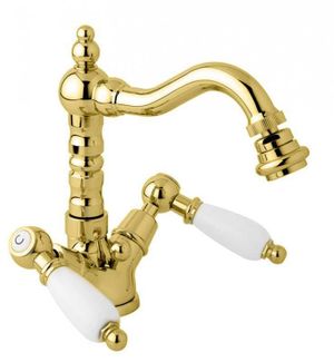Управление: вентильное Материал: латунь Исполнение: хром, бронза, золото 24 карат Длина излива: 15,5 см Механизм: керамическая кран-букса Отверстия для монтажа: 1 отверстие Тип подводки: гибкая 1/2" Оснащение: донный клапан, аэратор Рабочий интервал давления в водопроводной сети: 0,5-6,0 Атм Гарантия: 5 лет с даты продажи (за исключением резиновых уплотнителей, шлангов, переключателей)