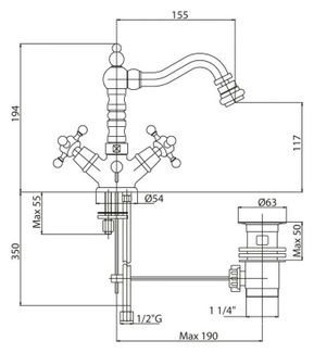 Управление: вентильное Материал: латунь Исполнение: хром, бронза, золото 24 карат Длина излива: 15,5 см Механизм: керамическая кран-букса Отверстия для монтажа: 1 отверстие Тип подводки: гибкая 1/2" Оснащение: донный клапан, аэратор Рабочий интервал давления в водопроводной сети: 0,5-6,0 Атм Гарантия: 5 лет с даты продажи (за исключением резиновых уплотнителей, шлангов, переключателей)