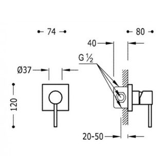 Однорычажный смеситель Tres Max 06217702 хром для душа, встраиваемый монтаж, подключение 1/2. Без душевого комплекта.