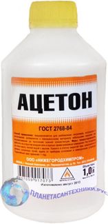 - Ацетон 1 л. Нижегородхимпром по выгодной цене 130 р. руб.;