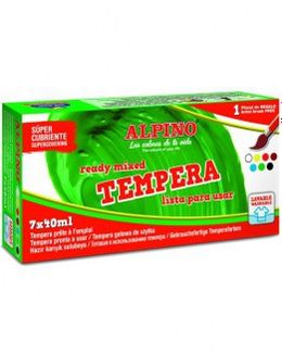Краски темперные с кисточкой Alpino отличаются яркостью, стойкостью. Они рассчитаны на детей от 3 лет и старше. В комплекте 7 баночек с красками разных цветов. Минимальная сумма заказа 1500 руб. Возможен самовывоз. Есть доставка.