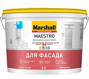 - МАРШАЛЛ Маэстро бaза BC прозрачная под колеровку краска фасадная (9л) MARSHALL Maestro base BC под колеровку краска акриловая для фасада (9л) по выгодной цене 2 390 р. руб.;