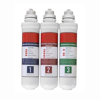 Комплект сменных картриджей "Стандарт" Трехступенчатая система водоочистки Для питьевых систем серии "Нева Стандарт" Артикул: F60101В комплект входит: