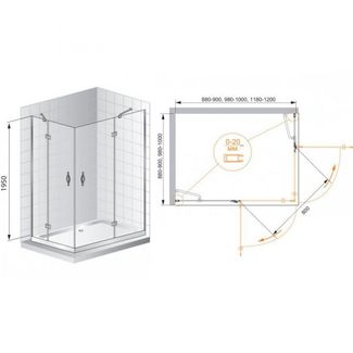Душевой уголок Cezares Bergamo AH2 (100x90) (левый) прозрачное стекло