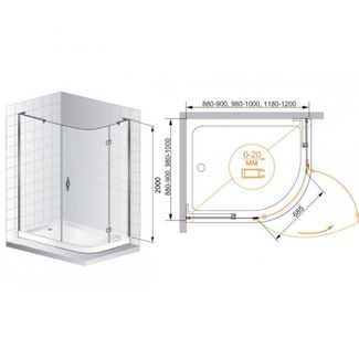 Душевой уголок Cezares Bergamo RH1 (120x90) (левый) прозрачное стекло