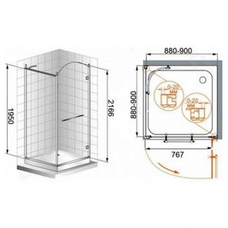Душевой уголок Cezares Retro A1 (90x90) (правый) матовое стекло с прозрачным узором (золото)