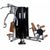 - Отдельно расположенный нижний тяговый блок с короткой тренировочной рукоятью на цепи с карабином позволяет тренировать мышцы спины, бицепсы, трицепсы, пресс, трапециевидные мышцы, бицепс бедра, ягодицы, икроножные мышцы.