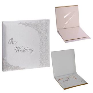 Обложка обтянута белоснежной тканью и декорирована цветочной апликацией. Магнитные листы позволят заполнить альбом фотографиями любых размеров и надёжно защитят их от повреждений. Например, на десяти двусторонних листах в альбоме можно расположить 80 фотографий стандартного размера 10*15 см.