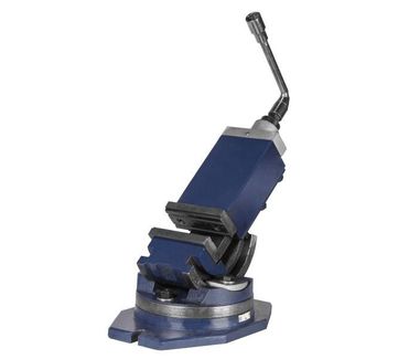 Тиски станочные Stalex WOA 2ух осевые - предназначены для фиксации заготовок под различными углами, применяемых на сверлильных, фрезерных и других видах станков. Предназначены для фиксации на станинах металлообрабатывающего оборудования. Тиски обеспечивают возможность наклона обрабатываемой заготовки на угол от 0 до 90° и поворот относительно основания от 0 до 360°. Основные детали тисков, в том числе поворотное основание, изготовлены из мелкозернистого высокопрочного чугуна. Съёмные рифлёные губки изготовлены из закаленной инструментальной стали и отшлифованы.