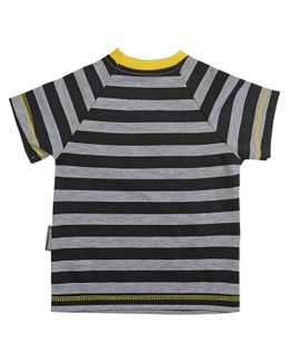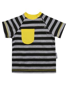 Футболка Bambinizon с короткими рукавами и округлой горловиной изготовлена из хлопчатобумажной ткани, мягкость которой оценят малыши и их мамы. Около выреза предусмотрена застежка на двух кнопках, которая облегчит надевание и снятие футболки. Модель в черную полоску с кармашком и горловиной желтого цвета подойдет и мальчику, и девочке. Минимальная сумма заказа 1500 руб. Возможен самовывоз. Есть доставка.