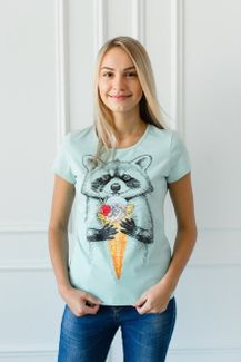 - Футболка женская Енот бирюза по выгодной цене 271 р. руб.;