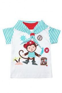 Футболка коллекции "Пираты" от КотМарКот - красивая модель для новорожденного мальчика. На груди яркий красочный принт в виде забавной обезьянки. Выполнена из натурального сырья.