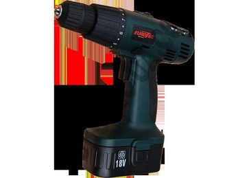 Аккумуляторная дрель, 18 В, 2 А, 2 скорости (0-600, 0-1700 об/мин), самозажимной патрон 10 мм, кейс, две батареи, 3-5-часовая зарядка, набор сверел и насадок