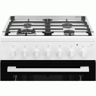 Газовая плита с газовой духовкой и электрическим грилем, 60см шириной, белого цвета, газовая духовка с электрическим грилем, электрический гриль, механический таймер с подачей звукового сигнала, 2 режима, чугунные держатели для посуды, газконтроль варочной поверхности, интегрированный автоподжиг варочной поверхности, полезный объём 61 л., хромированные направляющие из нержавеющей стали, эмаль лёгкой очистки, термостат, освещение духовки, 150°C - 250°Cинтегрированный автоподжиг духовки, газконтроль духовки, 2 эмалированных противня: 1 обычный, 1 глубокий, стеклянная крышка, None Возможен самовывоз.