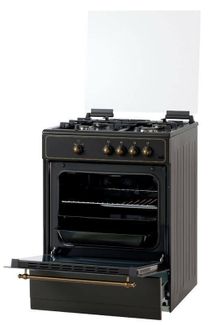 Газовая плита Simfer дизайн Ретро 60см Цвет: Черный. Электроподжиг: да. Гриль: нет. Конвекция: нет. Вертел: нет. Количество режимов работы: 1. Таймер: Механический. Габариты: 85х60х60 см. None Возможен самовывоз.