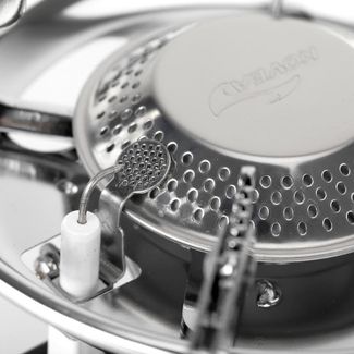 Газовая горелка Kovea TKB-8911-1 Scout Stove — популярная туристическая газовая горелка с пьезоподжигом. Благодаря увеличенному размеру головки пламя горелки рассеивается, что уменьшает вероятность пригорания пищи.Раскладные лапки конфорки горелки позволяют использовать посуду большого размера и приготовить пищу для нескольких человек. Теплоотражающий экран круглой формы экономит топливо и эффективно отражает тепло газовой горелки на дно посуды, увеличивая тем самым КПД.Горелка работает от газового баллона резьбового стандарта, но возможно и подсоединение к цанговому газовому баллону при помощи адаптера со шлангом Cobra.Мощность: 1,53 кВ., Расход топлива: 110 гр./ч.Инструкция к газовой горелке Kovea TKB-8911-1 None