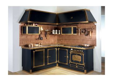 Угловой кухонный блок 200х200: Духовка 70 см+ Газ. Варочная панель 70 см+ ниша ПММ на 60 см+1многофун. Угловая мебел. База 90х90 см+ Угловая мойка с латун. Краном в угловой базе на 90 см. Дверцы и обрамлен.-золотая латунь. None
