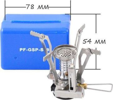 Это одна из самых легких портативных газовых плит. Она оборудована системой пьезоэлектрического розжига и системой предотвращения задувания пламени сильными порывами ветра. Специально создана для пеших путешествий (трекинга). В сложенном виде компактно размещается в пластиковом кейсе, который защищает плиту от повреждений и попадания влаги. Для питания плиты используются газовые смеси в баллонах с резьбовым клапаном PF-FG-230 (230 гр) и PF-FG-450 (450 гр). Используя переходник PF-GSA-02 (приобретается отдельно) возможно подключение плиты к цанговому баллону PF-FG-220 (220 гр). Рекомендуется использовать в качестве индивидуальной портативной плиты для 1-го или 2-х человек. Либо взять ее на случай повреждения основного оборудования и использовать как аварийный комплект.ХарактеристикиМощность горелки (газовое топливо)2,0 кВтРасход газа140 г/часДиаметр горелки28 ммВес95 гВес в кейсе125 гРазмеры в походном положении78 х 54 х 45 ммМаксимальный диаметр используемой посудыдо 15 смМаксимальная вертикальная нагрузка5 кг (5 л воды)СерияS (резьбовая)Пьезоэлектрический розжигестьИнструкция к газовой горелке Следопыт Спутник GSP-S09 None