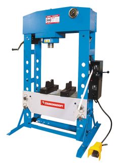 Преимущества: • Армированный шланг соединяющий насос и цилиндр. • Подвижной цилиндр по горизонтали (влево-вправо). • Стопорные кольца на пальцах удерживающие стол пресса. • Устойчивая напольная установка. • Манометр на цилиндре заполнен компенсирующей жидкостью, что обеспечивает устойчивость к колебаниям давления в системе. • Удобное ножное и ручное управление насосом. • Лебедка для поднятия и опускания стола. • Надежная конструкция, благодаря цельной раме. • Долговечная порошковая окраска.