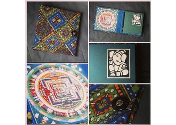 Блокнот-скетчбук "ганеша" формат 20х20 см обложка из ткани robert kaufman usa, с мягкой подкладкой. внутри карман для визиток и крепление для карандаша или ручки. блок ручной работы из тонированной бумаги со вставками из крафт бумаги. иллюстрация "мандала калачакра", миниатюра — тушь/перо. None Есть доставка.