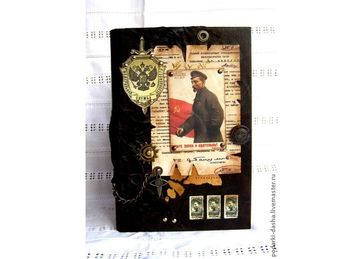 Мужской ежедневник для сотрудника фсб в винтажном стиле: складки кожи, документ того времени под грифом совершенно секретно как элемент декора, заламинированный дзержинский с его знаменитой фразой))) и современная эмблема фсб на болтах, а также - цепочка с ножом справедливости))) и марки с изображением дзержинского. очень такой советский получился, модный))) листочки обожженные тонировка по краям, состарены в кофе и брызги кофе по ним), 2 разворота оформила тематически - наклейки, штампы, распечатки. застегивается на резиночку и винтажную армейскую пуговицу. изготавливается на заказ точное повторение невозможно) None Есть доставка.