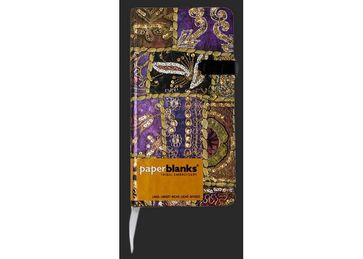 обложка этой записной книжки, прекрасно украшена пёстрыми узорами индийских вышивок, которые представлены в виде затейливых швов-цепочек, которые выполнены из металлических ниток, искрящихся сверкающими блёстками, маленькими пурпурными ракушками. кроме того, они инкрустированы крохотными зеркальцами.