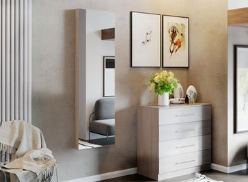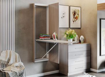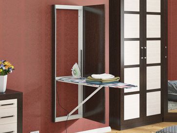 Гладильная доска Амели — отличное решение для современной квартиры. Модель находится за дверцей с зеркальным фасадом, которую при необходимости можно распахнуть и оборудовать полноценное место для глажки. Когда шкафчик закрыт, гладильная доска абсолютно незаметна.<br>