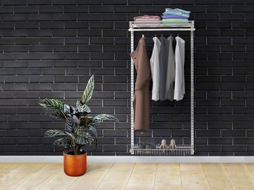 Гардеробная система Атлант 9 — удачное решение для небольшой квартиры. Открытая конструкция визуально не загромождает пространство и отлично вентилируется. Модель можно установить в комнате, прихожей или на лоджии. На полках и перекладине найдется место для нескольких пар обуви, аксессуаров и одежды любой длины.<br>