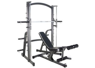 Эргономичный дизайн. Надежная, устойчивая конструкция. Ножная тяга с 4 мягкими валиками и держателем для «олимпийских» весовых дисков, 4 угла наклона сиденья. Штанга для тренировки с крючками безопасности. Регулируемые улавливатели штанги с ... None Есть доставка.