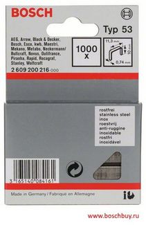 - Bosch Набор 1000 Скрепок 10 мм T53 из нержавейки (2609200216 , 2.609.200.216) по выгодной цене 739 р. руб.;