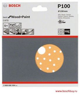 - Bosch Набор 5 шлифовальных листов C470 Best for Wood and Paint Multihole 150 мм K100 по дереву и краске (2608608X84 , 2.608.608.X84) по выгодной цене 282 р. руб.;