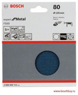 - Bosch Набор 5 шлифовальных листов F550 Expert for Metal 125 мм K80 по металлу (2608608Y15 , 2.608.608.Y15) по выгодной цене 263 р. руб.;