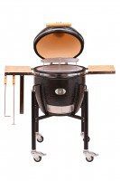 Большой керамический гриль MONOLITH GRILL CLASSIC черного цвета.В Комплекте ножки из нержавеющей стали с колесиками и боковые столики из дерева Тик. None