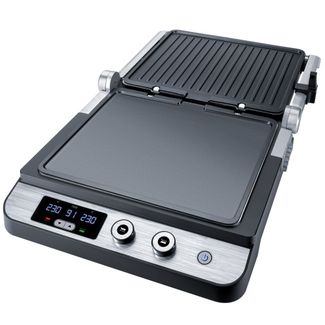 Контактный гриль Steba FG 120 Корпус из сатинированной нержавеющей стали Индивидуальная регулировка температуры до 230°C для каждой пластины с индикацией на дисплее Быстрое приготовления пищи за счёт двустороннего обжаривания Возможно использовать как настольный гриль - раскрытое на 180° положение жарочных пластин Съемные пластины (гладкая и ребристая) размером 27.0 х 24.0 см с антипригарным покрытием Поддон для сбора жира стекаюшего с пластин гриля None Страна производства: Китай Возможен самовывоз. Есть доставка.