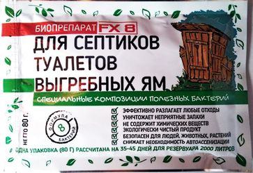 - Биопрепарат для септиков,туалетов,выгребных ям 80г FX8 по выгодной цене 150 р. руб.;