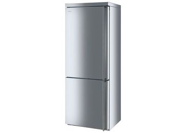 Отдельностоящий холодильник полностью из нержавеющей стали. Дверной упор левый. Класс энергопотребления A+. Общий объем: 360 литров. 2 электронных термостата. None