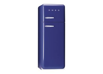 Отдельностоящий холодильник в стиле 50-х годов, синий, дверь навешена справа и не перенавешивается. Класс энергопотребления A+. Общий объем: 312 литров, приспособлен для работы в тропическом климате. None