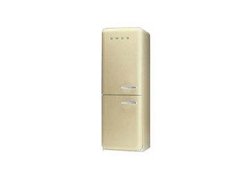 Холодильник, стиль 50-х годов, кремовый, дверь навешена слева. Класс энергопотребления A. Общий объем: 330 литров. 2 компрессора, приспособленных для работы в тропическом климате. None