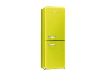 Отдельностоящий холодильник в стиле 50-х годов, лайм, дверь навешена справа и не перенавешивается. Класс энергопотребления A+. Общий объем: 330 литров. 2 компрессора, приспособленных для работы в тропическом климате. None