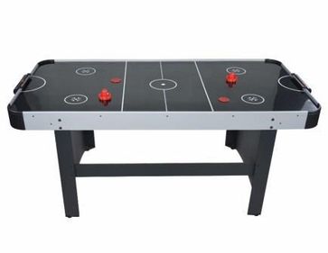 Размеры стола допускают его размещение на сравнительно небольшом пространстве без потери качества игры, а черный цвет покрытия выглядит необычно и стильно с его контрастными битами, шайбами и линиями разметки.