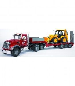 Bruder Mack с прицепом-платформой и погрузчиком JCB 4CX
