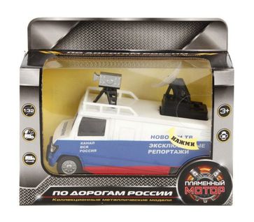 "Телевидение. Новости. Эксклюзивные репортажи" торговой марки "Пламенный мотор" - инерционная машинка масштаба 1:32. Работает от трех батареек LR41 1,5V в комплекте . Минимальная сумма заказа 1500 руб. Возможен самовывоз. Есть доставка.