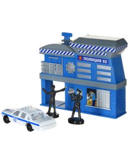 Набор Технопарк Полицейская часть – это комплект состоящий из здания полицейского участка, модели автомобиля, а также двух полицейских, один из которых является регулировщиком, а второй останавливает нарушителей скоростного режима. Модель полицейской машины выполнена из металла и отличается высокой реалистичностью. Минимальная сумма заказа 1500 руб. Возможен самовывоз. Есть доставка.