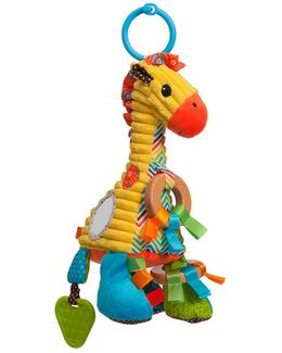 Игрушка-подвеска Жирафик Infantino - мягкая игрушка с погремушкой, безопасным зеркальцем, 2 кольцами из натуральной древесины, прорезывателем и атласными ленточками. Пошита из разнофактурных тканей и снабжена шуршащими элементами. Игрушка развивает тонкую и мелкую моторику, зрительное и звуковое восприятие. Клипса позволяет крепить игрушку к коляске, люльке и автокреслу. Минимальная сумма заказа 1500 руб. Возможен самовывоз. Есть доставка.