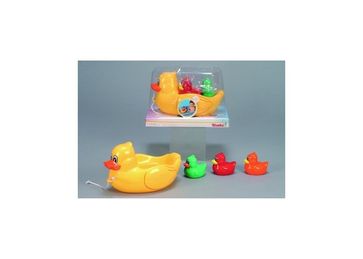 Утка и три утёнка превратят обычное купание в забавную игру. Утята могут располагаться на спине мамы-утки. Игрушку можно использовать как в ванной комнате, так и в бассейне. None