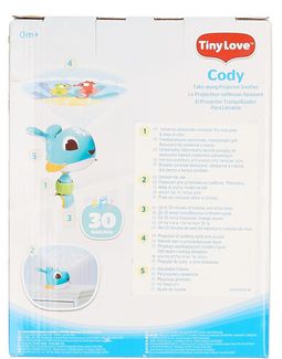 Игрушка проектор Tiny Love Коди работает от 3 батареек типа АА. Кроме изображения морских обитателей спроецированных на стену или потолок, она развлечет кроху приятными мелодиями. Цена со скидкой действует до 31 мая Возможен самовывоз. Есть доставка.