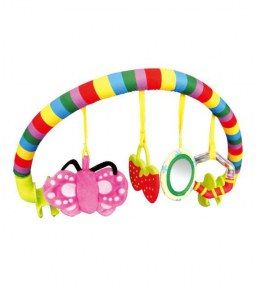 Дуга с игрушками-подвесками Лето от бренда Жирафики - прекрасная развивающая игрушка для самых маленьких. При помощи специальных прищепок дугу можно просто прикрепить на коляску, кроватку или автомобильное кресло малыша. Разные яркие игрушки-подвески: мягкая погремушка, две пластиковые погремушки разной формы и безопасное зеркальце надолго привлекут внимание малыша. Играя с яркими игрушками разных цветов и текстур ребенок развивает мелкую моторику, восприятие цвета и звука, а также воображение. Минимальная сумма заказа 1500 руб. Возможен самовывоз. Есть доставка.