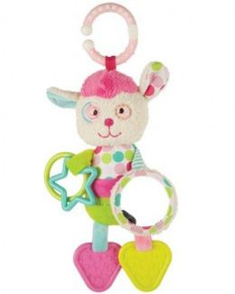 Подвеска в виде симпатичной Овечки Мими без сомнения понравится крохе, ведь в ней так много интересного и полезного для малыша. На передних лапках игрушки - гремящие фигурки и безопасное зеркальце, на задних лапках - мягкие пластиковые прорезыватели. Внутри Овечки находится пищалка. При помощи кольца игрушку можно подвешивать к коляске, кроватке или автокреслу. Минимальная сумма заказа 1500 руб. Возможен самовывоз. Есть доставка.